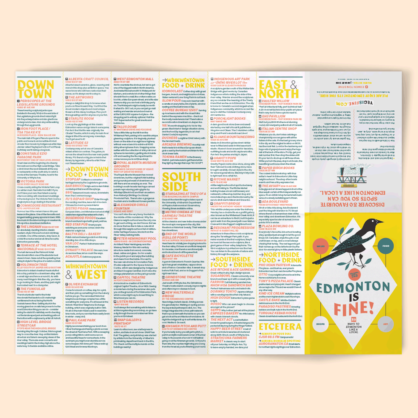 Freshly updated for 2026, Edmonton is Fine is a printed indie map + guide to Edmonton, Alberta, Canada. Discover 80 favourite spots so you can Edmonton like a local: it's an Edmonton cheat sheet!